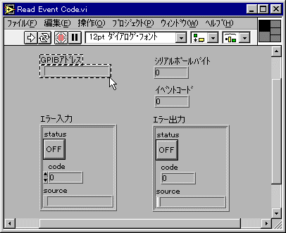 このダイアグラムはGPIBインタフェースを通して計測器のシリアルポールバイトと、もっと詳しい状態を示すイベントコードを読み出します。